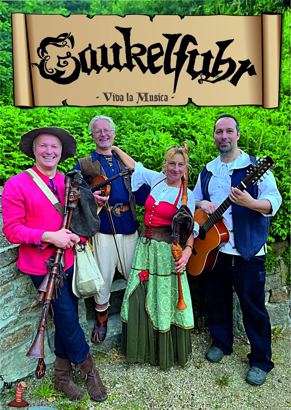 Die vier lustigen Musikanten machen mittelalterliche Musik mit Laute, Flöten, Fiedel, Dudelsäcken und viel Gesang und spielen sich mit historischen Trink- und Gesellenliedern in die Herzen der Zuschauer. Die Themen der alten Lieder und Geschichten lassen sich mit einem Augenzwinkern gut auf unser Heute übertragen.